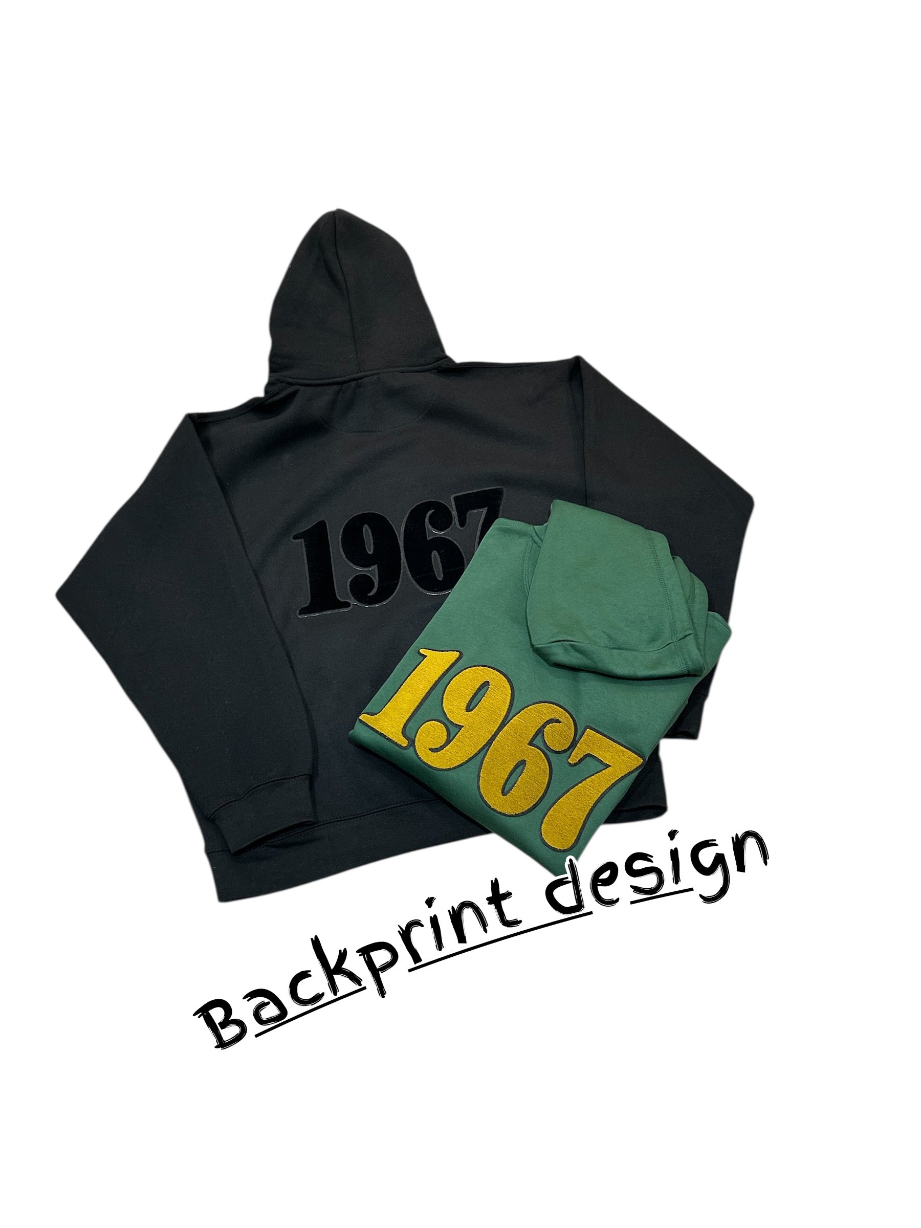 OUR NEW LIMITED EDITION HOODIE , THE BIG CUP ON THE FRONT 1967 ON THE BACK OUR 3D EMBROIDERY IN VINTAGE GREEN WITH GOLD EMBROIDERY OR OUR GHOST BLACK ON BLACK
